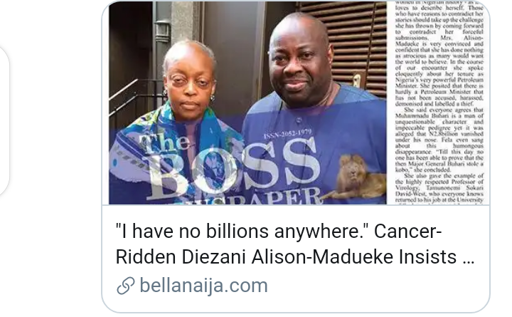 Madueke, who was later flown to the United State of America based on rumours that she was suffering from cancer in which Dele Momodu confirmed to Nigerians with pictures as proof.
