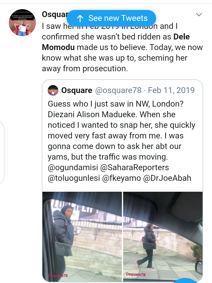 A lady on Twitter who had claimed she had seen her on the streets of America looking Healthy, had called out to the attention of the Nigerian government on February 2019, but nothing was done about it, she claimed.